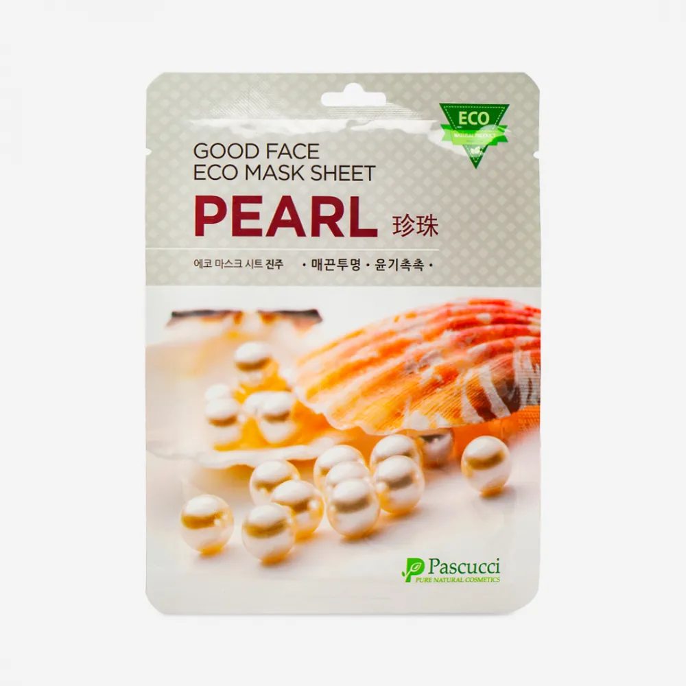 Pascucci Good Face Eco Mask Sheet Pearl Fabric Face Mask with Pearl Extract, 23 ml – creates a protective barrier on the skin against the negative effects of the environment, combats the first signs of aging, and evens out skin tone.