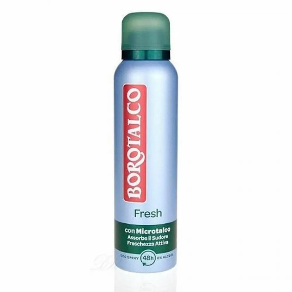 Borotalco Fresh guarantees you the freshness of dry, fragrant, and protected skin: thanks to the effectiveness of micro-talc, which absorbs sweat, it regulates perspiration for a long time.