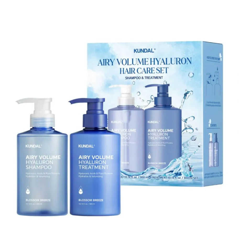Set of shampoo + conditioner for hair volume KUNDAL AIRY VOLUME HYALURON EDITION, 300+300ml