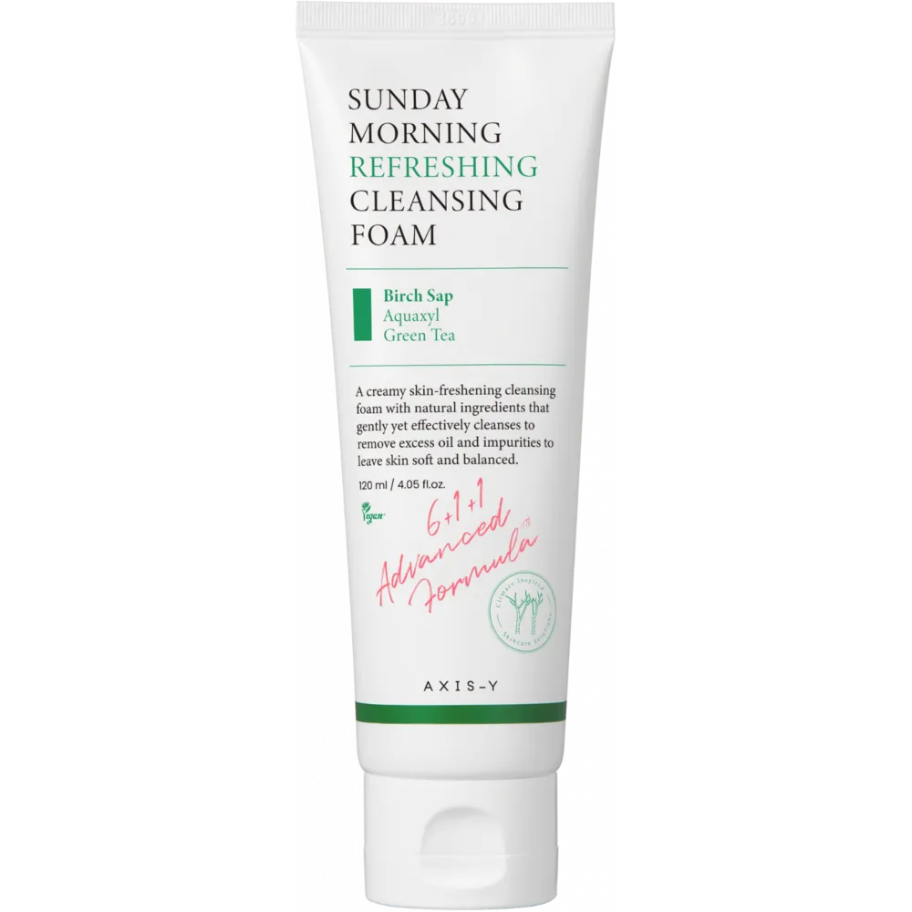 AXIS-Y Sunday Morning Refreshing Cleansing Foam — мягкая пенка для умывания с pH 5.5, которая деликатно очищает кожу, не вызывая ощущения стянутости. Эффективно удаляет загрязнения, излишки себума и остатки макияжа, при этом поддерживает естественный гидролипидный баланс кожи. Подходит для всех типов кожи, включая чувствительную и склонную к акне.